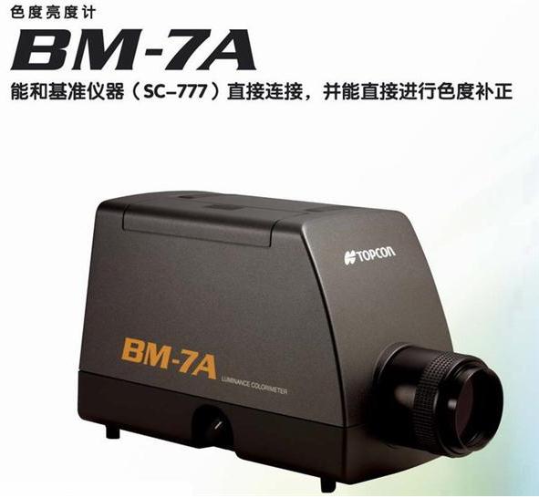 Topcon BM-7A是亮度色度计,是以高精度的方式来量测,像CRT、LCD、LCD背光、LED或其它由物体表面着色、印刷材料的反射光。