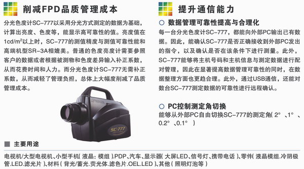 分光辐射度计 分光色彩计SC-777 二维色彩分析仪,色彩亮度计