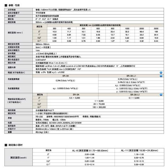 SR-3A-L1 0.1~3000cd/m2 1~9000cd/m2