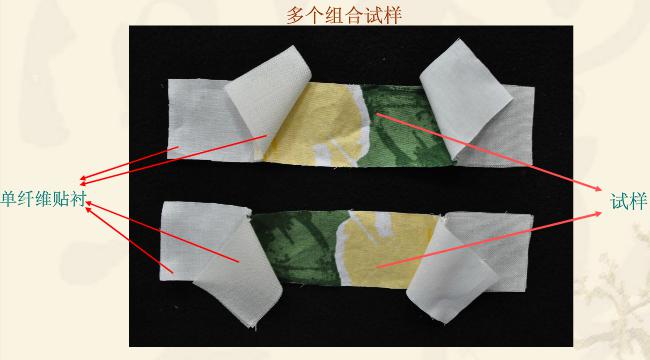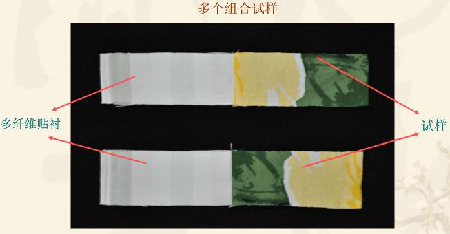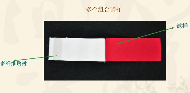 第一块用试样的同类纤维制成,第二块根据实验方法规定。如试样为混纺或交织品,则第一块用主要含量的纤维制成。第二块用次要含量的纤维制成。试样两面各用一贴衬织物完全覆盖。尺寸与试样相同,一般为40mmX100mm。