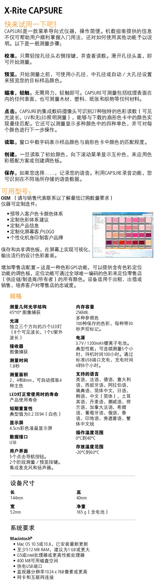 产品型号:  capsure便携式颜色测量仪