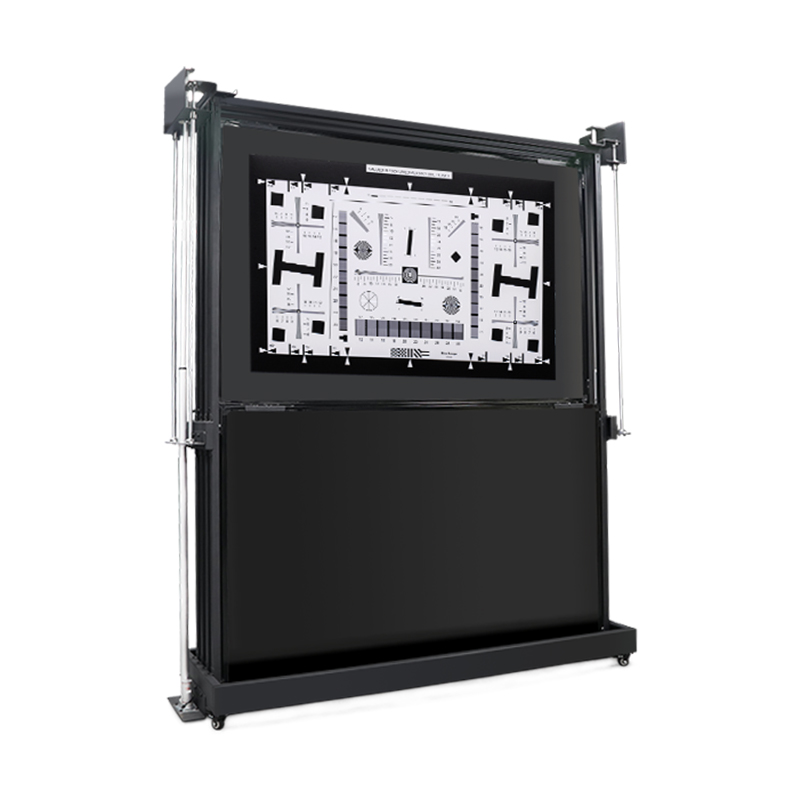 T1422-4E 多图卡挂架是一款针对摄像头测试图卡安放、测试而设计的挂架。本产品采用电动升降系统可分别控制 4 个挂板,每个挂板正反均可使用。